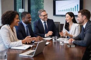 Students learn English for the workplace by practicing professional communication, presentations, and business writing skills.